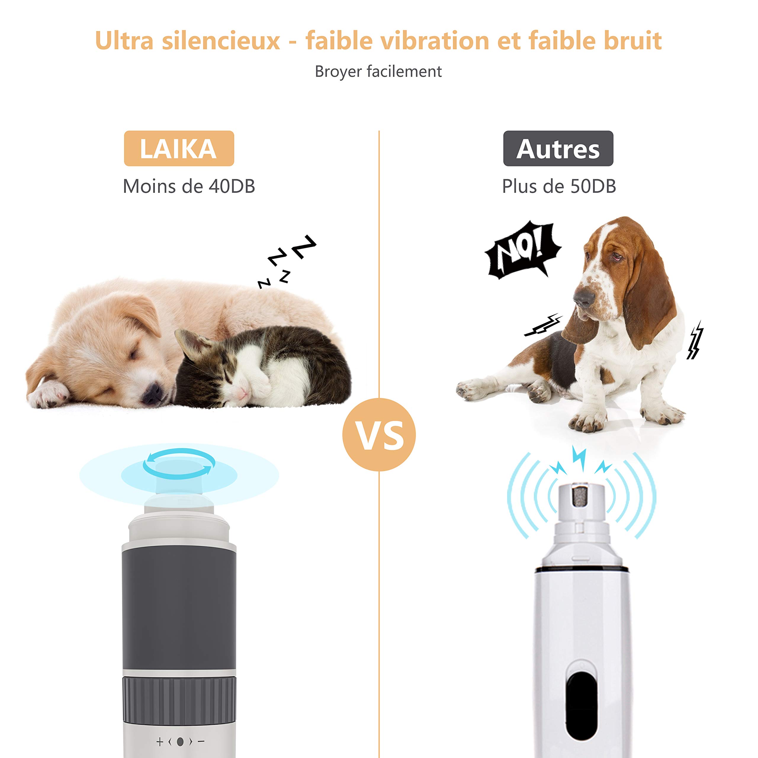🐾<50 DB BRUIT FAIBLE – Ultra-Silencieux et calme. Conçu avec une technologie à faible éclat et vibration, moins de 50 DB, votre animal n'a plus peur de se couper les ongles.