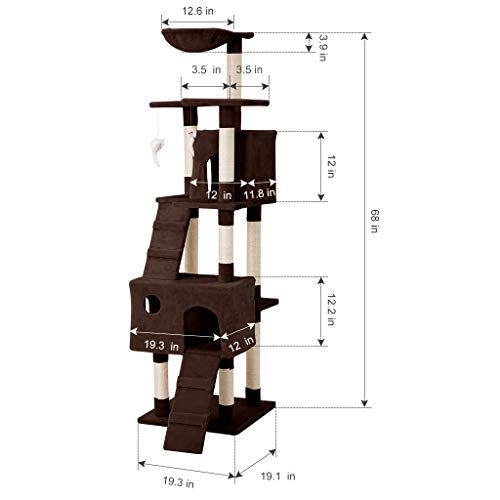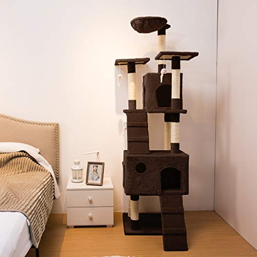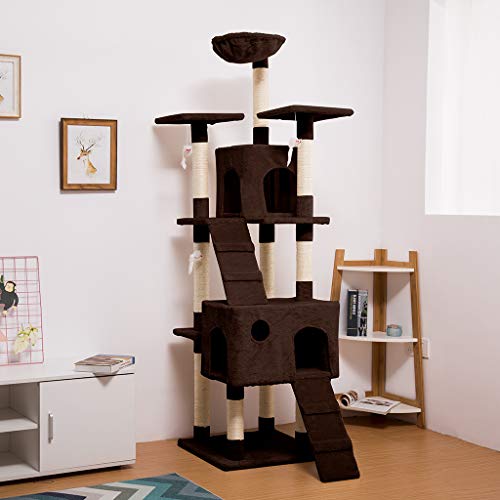 ARBRE À CHAT : grand arbre à chat de 173cm pour offrir de l’espace pour un maximum de 3-4 chats pour jouer, griffer, grimper et dormir ; il a 1 hamac, 3 plateformes d’observation, 2 condos et 2 échelles