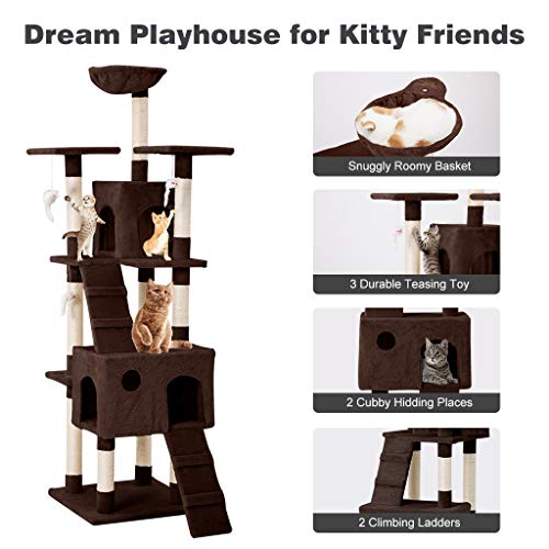 JOUETS À CHAT : inclus 3 jouets suspendus aux plates-formes de l’arbre à chat ; ces jouets interactifs améliorent le caractère enjoué et amusant de votre chat