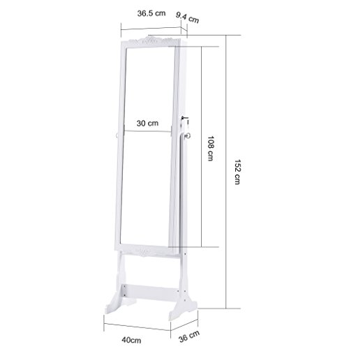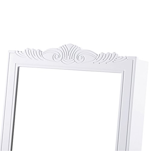 ÉLÉGANT ET ROBUSTE: l’armoire miroir à bijoux est une mélange d’élégance, modernité et qualité; c’est faite avec du panneau MD et a un très beau gravé autour du miroir; sa issue est sophistiquée ; une couche de peinture blanche protège l’accord