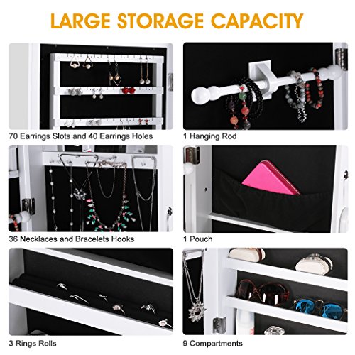 PROTEGE LES ACCESSOIRES: dans les garder intacts et en toute sécurité, le cabinet à bijoux a un intérieur en velours doux qui protégera vos accessoires des rayures; en outre, ce cabinet peut être fermé avec serrure à clé