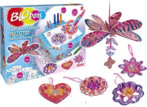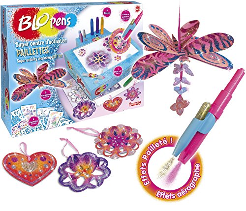 Ce set créatif c’est un concentré de magie. Faites scintiller vos créations amnistie aux stylos Blopens aux pouvoirs magiques ! Contenu : – 8 pochoirs, – 5 Blopens, – 1 support à paillettes, – 1 stylo de colle, – 4 tubes de paillettes, – 1 ruban de 1,20 m, – 5 créations à réaliser, – 1 boîte-pupitre – 1 notice. Les Blopens sont des feutres spéciaux à cause lequel les artistes en herbe peuvent souffler Dans faire naître à elles décor. Ce super centre d’activités Blopens propose en plus des effets aérographe classiques, des effets pailletés Dans faire scintiller ses dessins. Il suffit de pointer le feutre Blopens et de souffler par le capuchon Dans pulvériser de la couleur. Il faut alors utiliser le stylo de colle Dans décorer les parties de son choix et appuyer sur le tube de paillettes fixé sur le Blopens Dans fermer la colle de paillettes. Riche ! En retirant le pochoir on peut découvrir son dessin pailleté ! Les pochoirs sont réutilisables et les bouchons lavables.