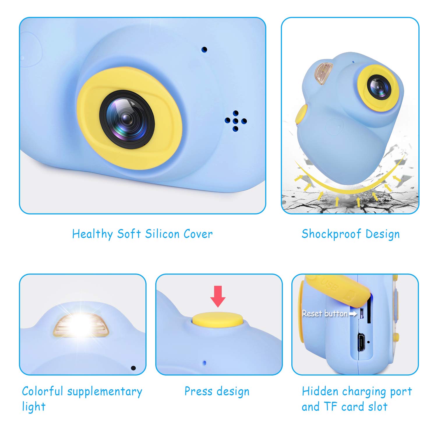 【Mini caméra】2″écran de haute définition,le poids de la caméra est équivalent à celui d’un œuf et la coque antidérapante permet à l’enfant de le tenir facilement dans la main et de ne pas capituler facilement.