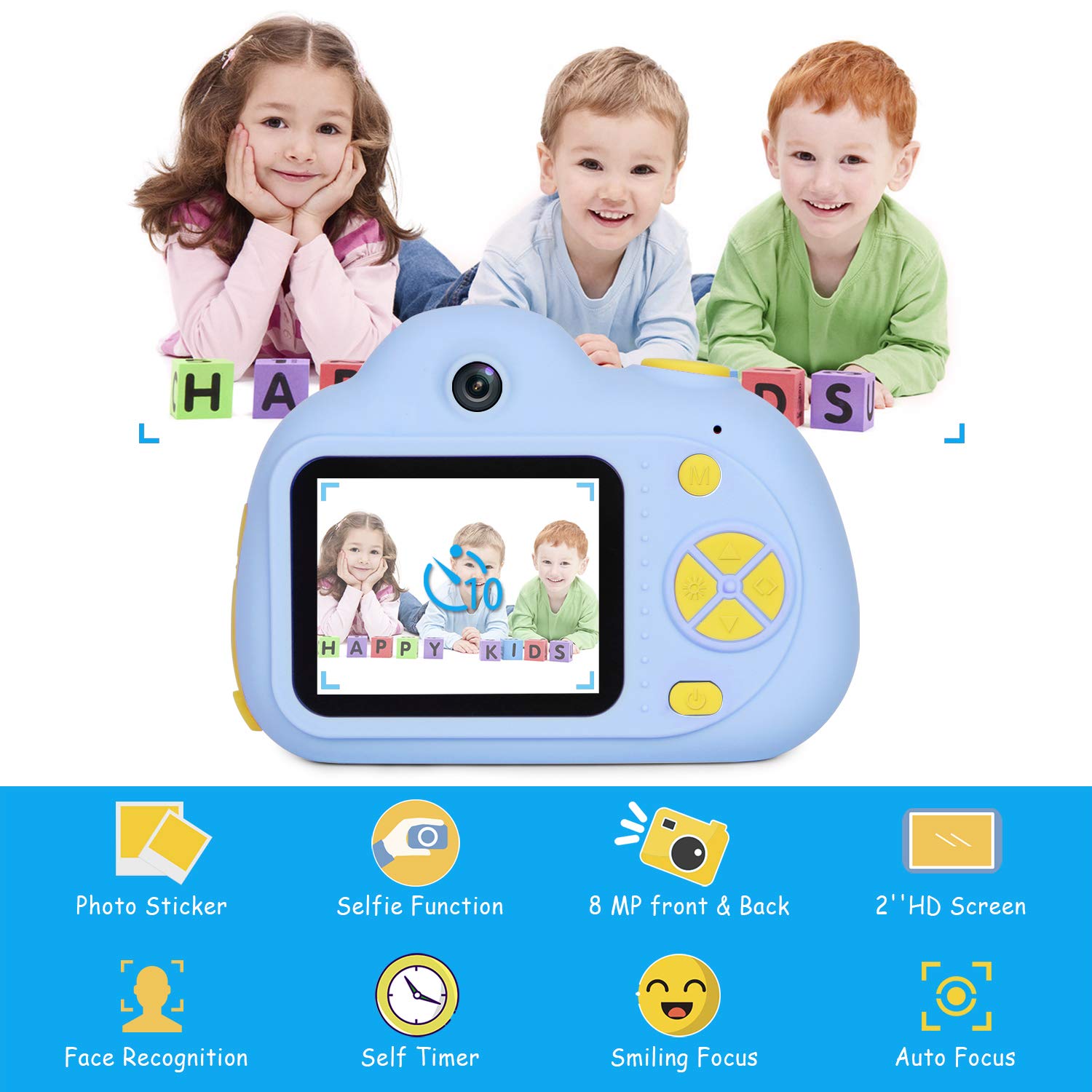 【Multifonctions】caméra frontale et caméra arrière commutables à volonté,photo des autocollants, détection des visages souriant,prise de vue en continu 3 fois,retardateur,10s de photo à temps, paysage,scène de nuit,portrait,portrait de nuit,plage etc.8 modes de scène au choix,mise au point automatique.Divers mode photo à cause que les enfants s’amusent.