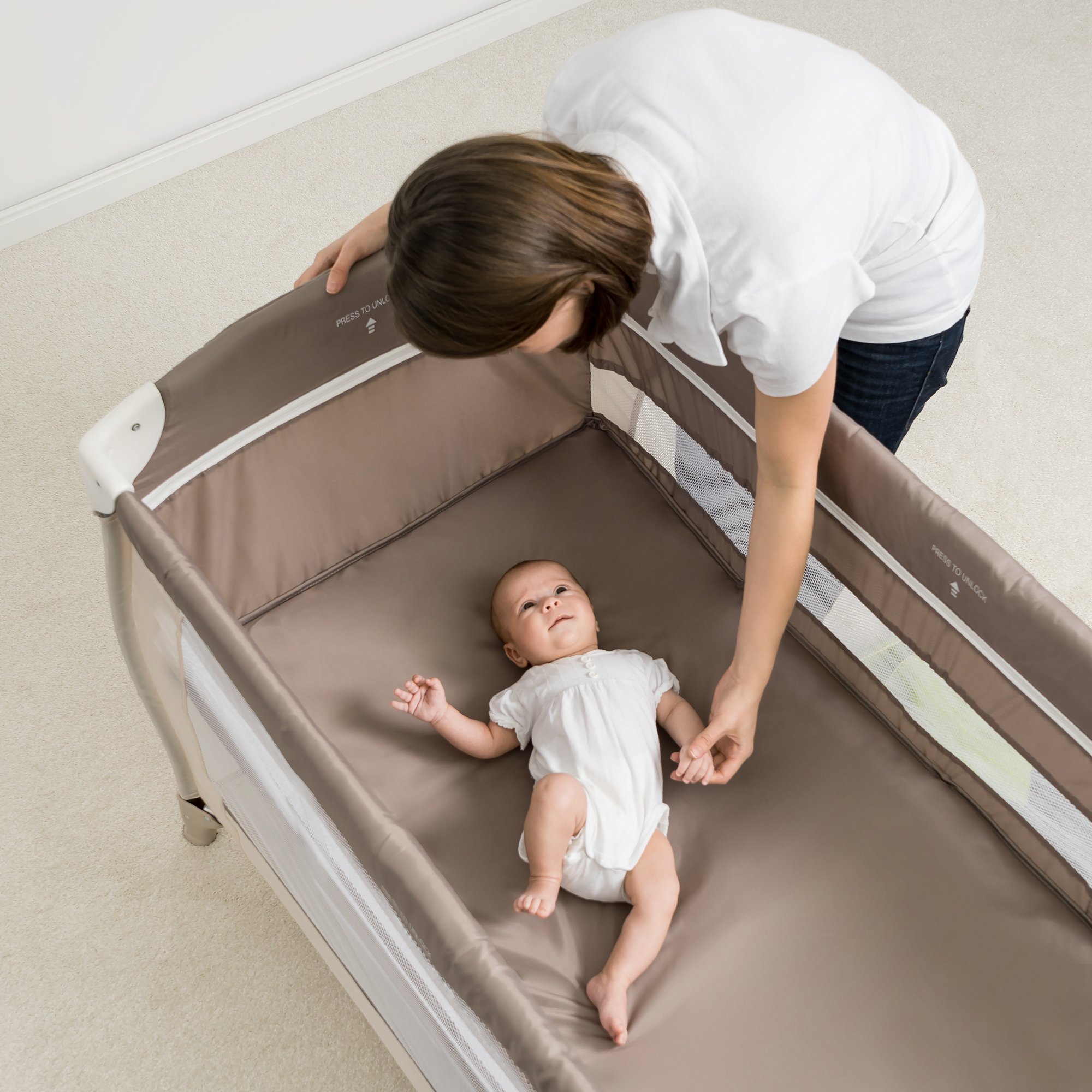 MATELAS ET SAC INCLUS: Le lit bébé est livré avec un matelas mince. Dans plus de confort nous conseillons un matelas de voyage épais supplémentaire. Rangement pour son sac de transport.