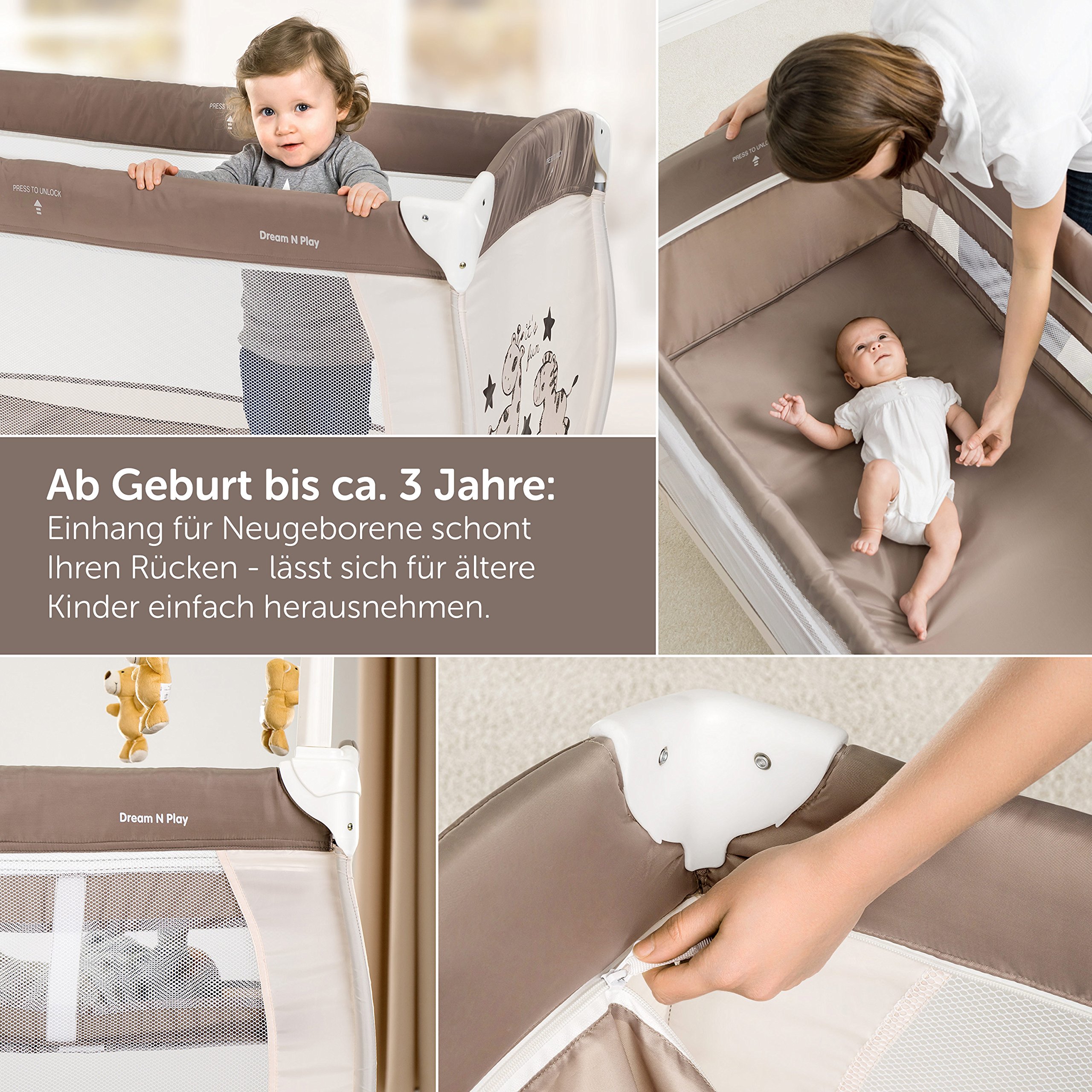 DE 0 À 3 ANS: Le lit parapluie convient Dans enfants jusqu’à 15 kg. Indulgence à la surface de couchage réglable en hauteur, vous couchez et sortez votre bébé sans mal de dos. Avec 120 x 60 cm, le lit d’appoint est aussi catégorique Dans enfants plus âgés.