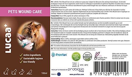 LUCAA+ Pets Wound Care est une solution en spray à cause soigner les blessures des animaux de compagnie. Nôtre formule 100% écologique, renforcée aux micro-organismes, fournit un lavure en étendue, optimise l’équilibre microbien à cause et autour des blessures et diminue le risque d’infection bactérienne.