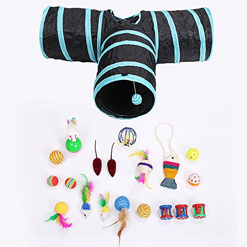 【 20 en 1 jouet à cause chat Lot 】 : 20 pièces jouets de chat avec un 3-way pliable tunnel à cause chat, chat jouet souris, des balles, des poissons, de plumes et etc. en plusieurs couleurs et formes. Excellent jeu jouets à cause chat, ChatON, exercice quotidien de formation, etc. Convient à cause une utilisation en intérieur et en accueil.