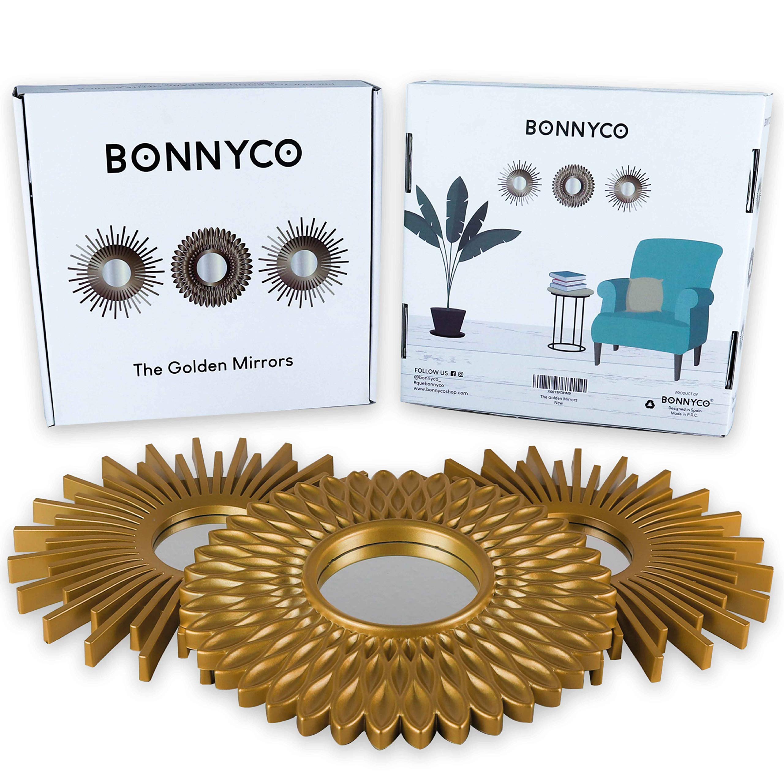 PACK DE 3 MIROIRS DORÉS DE BONNYCO