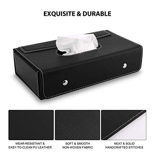 PREMIUM MATERIAL & GREAT DURABILITY: The car foldable tissue box adopted high-quality PU leather material and lining with soft non-woven fabric that will give you a smooth touching feeling. Easy to clean, durable and beautiful.