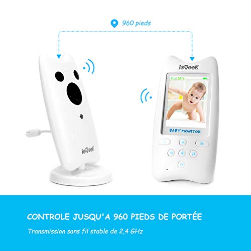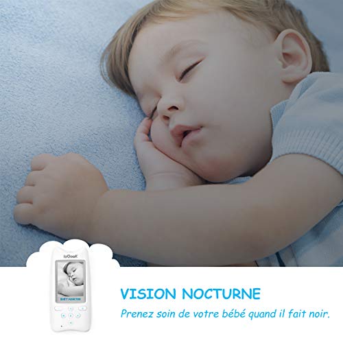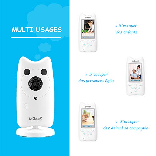 Babyphone Caméra Sans Fil, ieGeek Portable Ecoute Bébé avec Prendre des Photos Fonction, 2.4″ LCD, Vision Nocturne, Communication Bidirectionnelle, Capteur de Température, Berceuse, Rechargeable