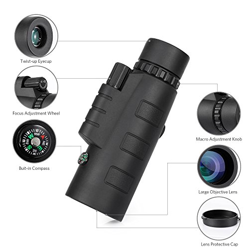 Monoculaire 10×40 – Grossissement assez puissant, regarder des oiseaux, des paysages, des sauvages 10X plus proche et bien claire, champ de vision de 1200m à 9600m.