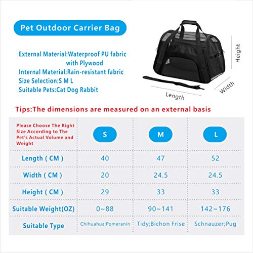 ★ REMARQUE – Vérifiez la taille et le poids de votre animal avant d’acheter le transporteur et familiarisez-vous avec les restrictions de déplacement d’un animal dans vous assurer qu’un « siège » est disponible dans votre animal avant votre embarquement .S: (L * W * H: 40 * 20 * 29CM) Costume dans animal de compagnie 0 ~ 88 onces; M: (L * W * H: 47 * 24.5 * 33CM) Costume dans animal de compagnie 90 ~ 141 onces; L: (L * W * H: 52 * 24.5 * 33CM) Costume dans animal de compagnie 142 ~ 176 onces