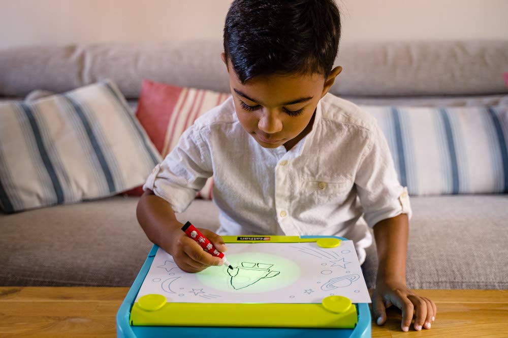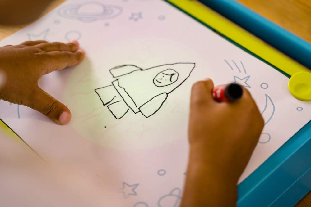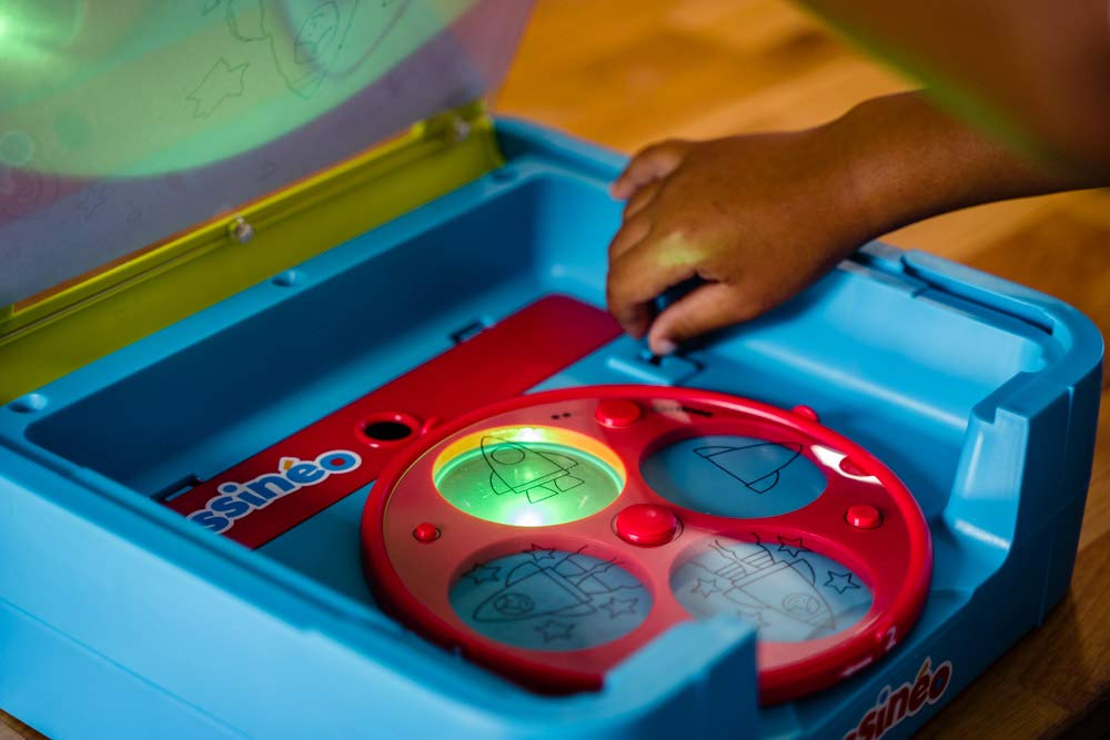 A travers 4 étapes l’gamin peut reconstituer un dessin en disciple les modèles. Il choisit son modèle, le occupation sur la roue, pose une feuille de papier sur le pupitre et commence à reproduire le dessin.