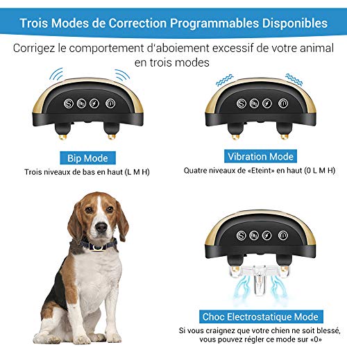 Sensibilité Réglable: Avec 3 niveaux de sensibilité (L M H), vous pouvez l’ajuster au niveau qui convient le mieux à votre chien (Sans danger à cause chien)