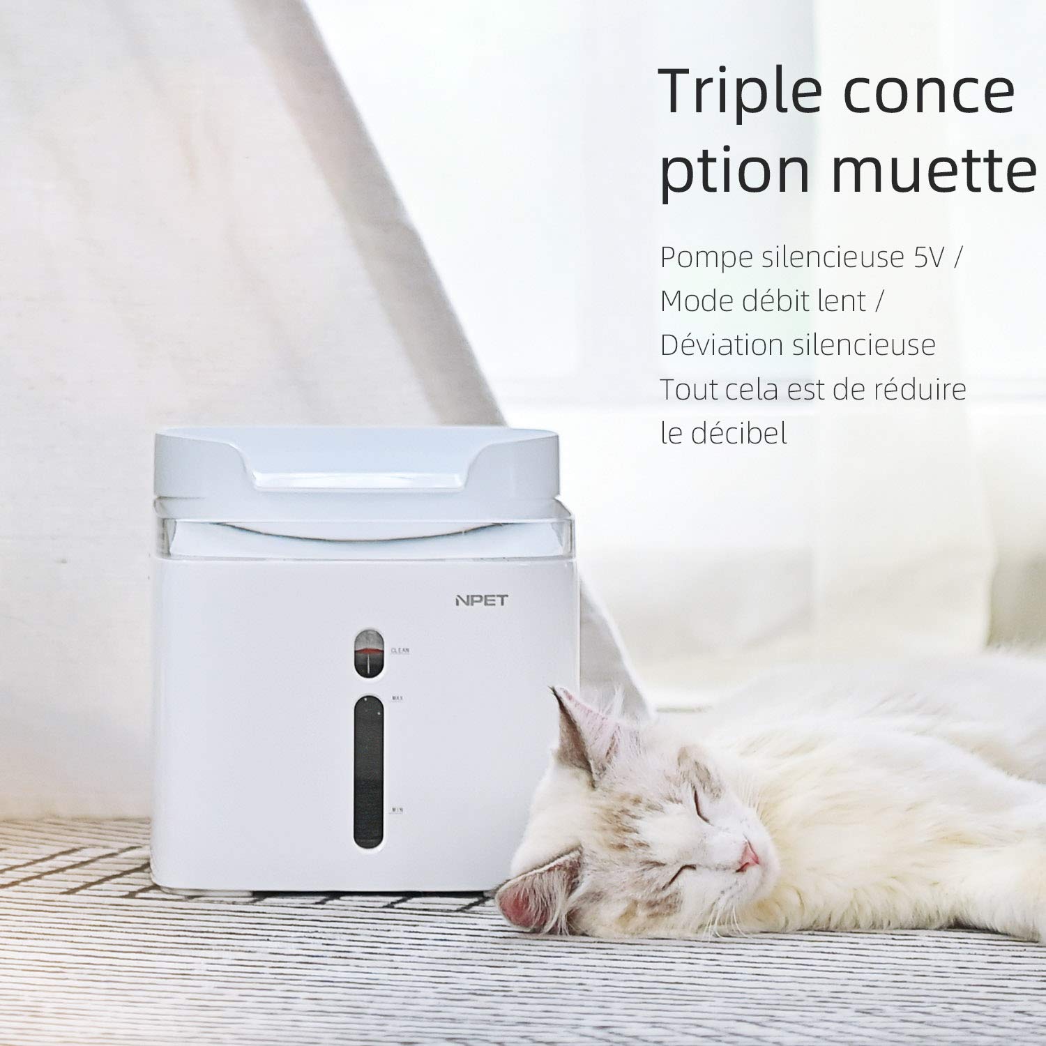 🐾 【Ultra silencieuse & Anti-sèche 】Conception à triple sourdine: pompe silencieuse 5V / mode débit lent / déviation silencieuse. Cette pompe est ultra silencieuse et à faible consommation