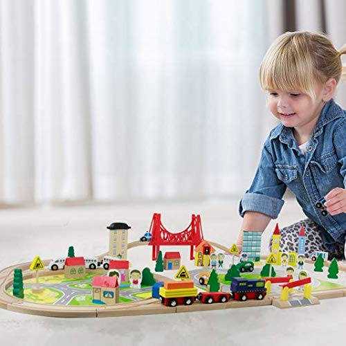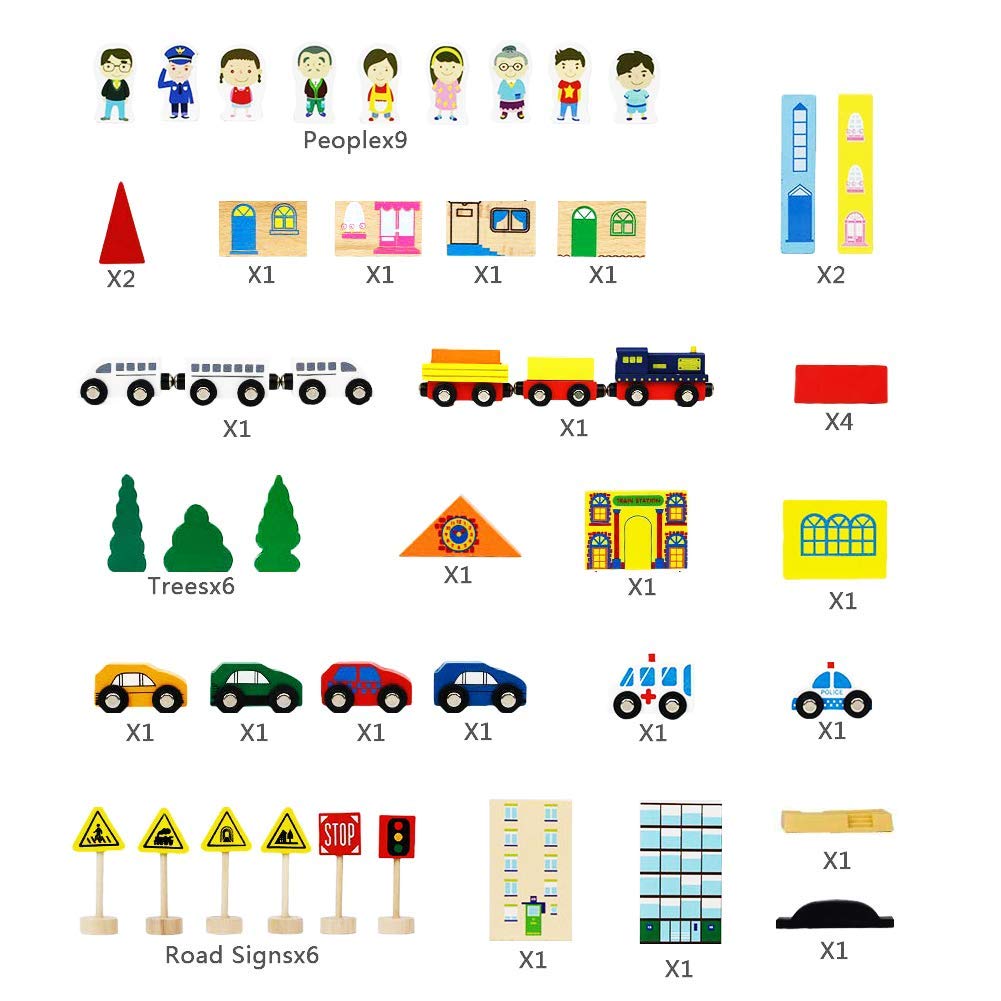Lot de trian bois comprend 82 pièces et offre le meilleur foisonnement jeu train.