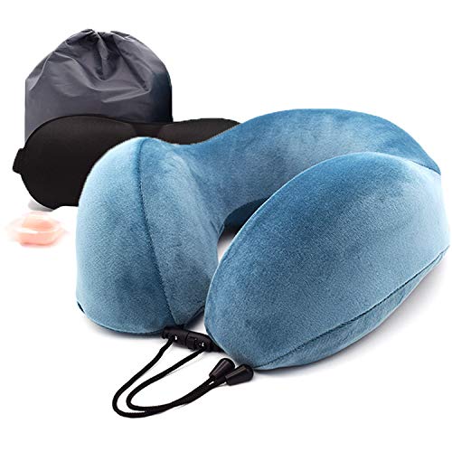 Compact et portable – Trousse de confort de voyage légère, portable et parfaite dans voyager en voiture, en train ou en avion, comprenant l’oreiller en mousse à mémoire de forme, le masque dans les yeux et le bouchon d’oreille.