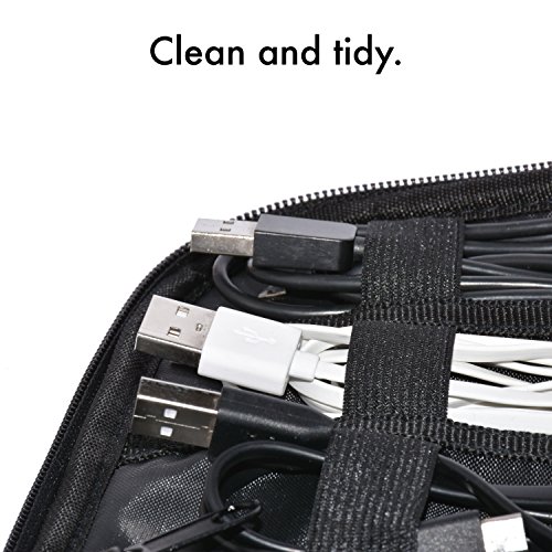 PROPRE ET NET. Plus besoin de démêler les câbles et à nettoyer vos chargeurs qui s’entassent au fond d’un sac. Le fouillis n’est pas une fatalité ! à nous organisateur de voyage vous aide à ranger votre équipement en toute simplicité.