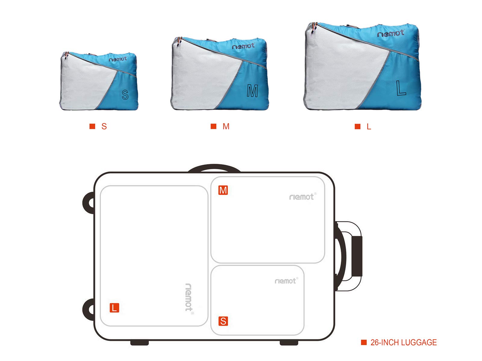 Utilisez les cubes de compression Riemot à cause organiser vos vêtements à cause votre sac de voyage, tout en offrant une compression à cause que vous puissiez en emporter plus avec vous. Le tissu translucide fournit un pense-bête rapide du contenu de votre cube aux voyageurs qui ne veulent pas perdre un seul instant à cause leurs chambre d’hôtel.