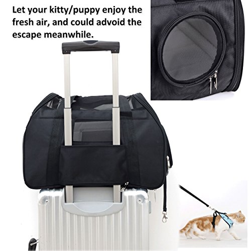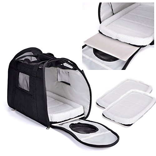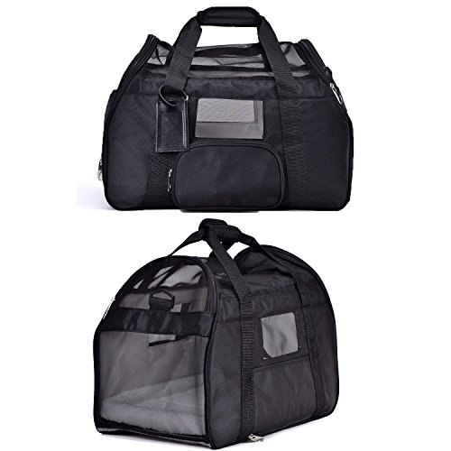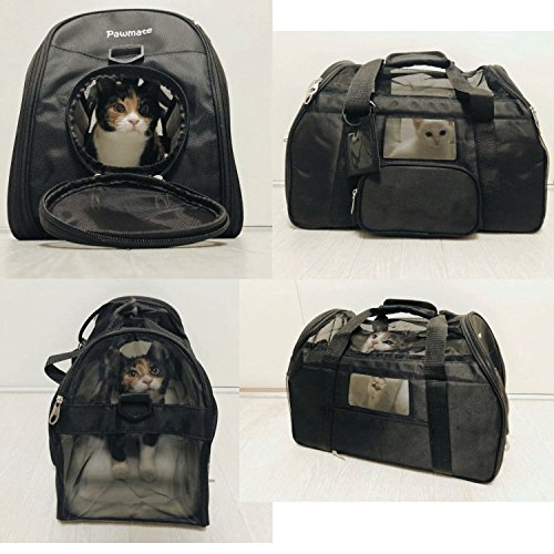 Dimensions 18″L x 10″ L x 13 « H, il est conforme à la plupart des compagnies aériennes, veuillez vérifier les exigences de compagnie aérienne avant de voyager avec votre animal de compagnie. Fonctionne très bien pour les chatons et les chiots jusqu’à 8 lb.