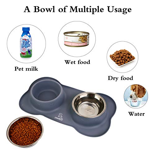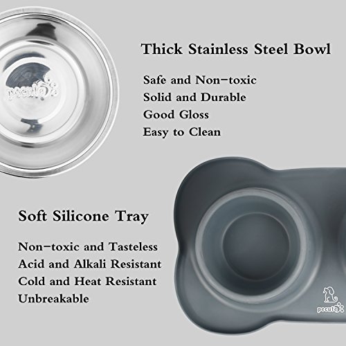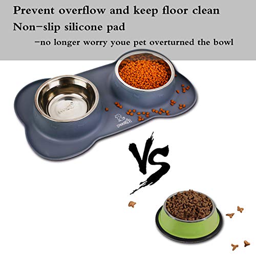 2【Non-dérapant et frappant】 – Tapis en silicone, que les boules ne défaillissent pas sur le sol lorsque votre animal de compagnie mange; Silicone Stand rend impossible de frapper le bol.