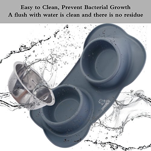 1【Conception de double bols de chien】 – Fonctionner comme un ensemble de dîner complet pour la nourriture, l’eau ou les deux. Disponible en 2 tailles, ensemble de bol de taille moyenne: 12 oz pour chaque bol, adapté pour les chats / chatons / chiots et petits chiens. Ensemble de bol de grande taille: 24 oz pour chaque bol, adapté aux chiens de taille moyenne.