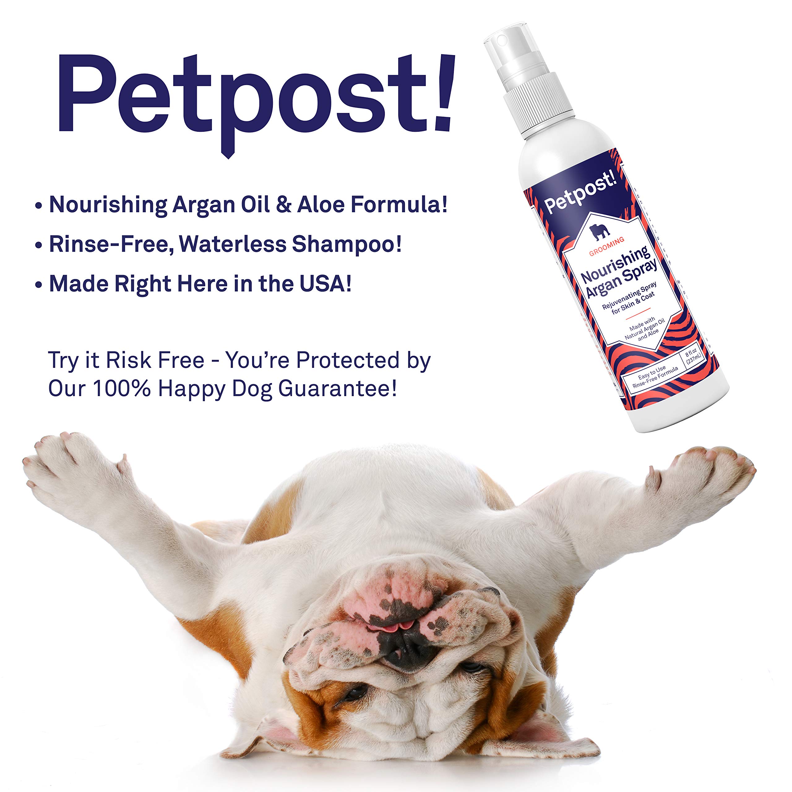 Petpost | Shampoing Sec en Spray à l’huile d’argan pour Chiens – Nettoyant et désodorisant naturellement nourrissant…