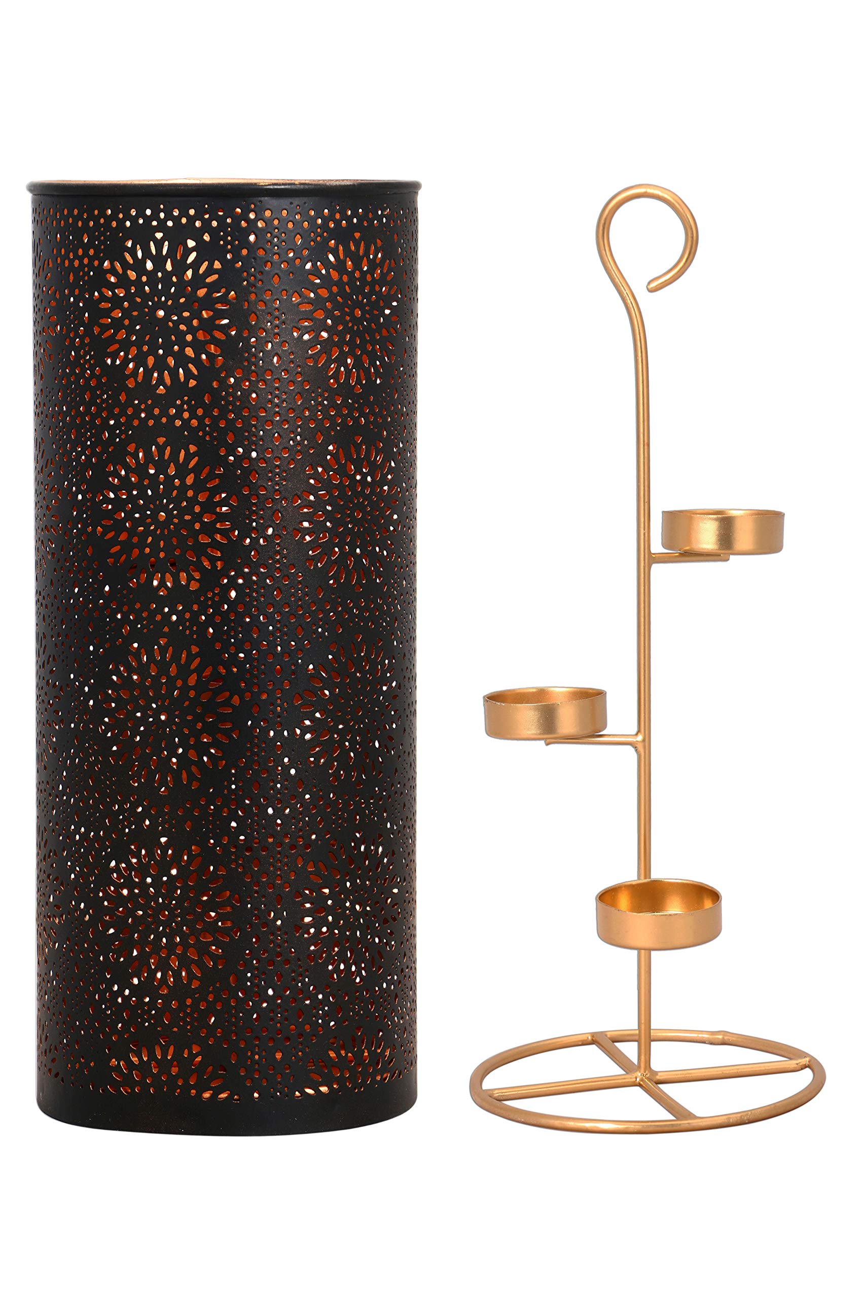 Porte bougie décorative métallique, pour bougies chauffe plat, fabriqué en inde, couleur noir or de l’extérieur et cuivre de l’intérieur, le design vintage éblouissant capte la lumière de la bougie et la reflète pour un bel effet, Grace de La forme en conception de lune, vous recevrez une lumière unique et de belle ombre.
