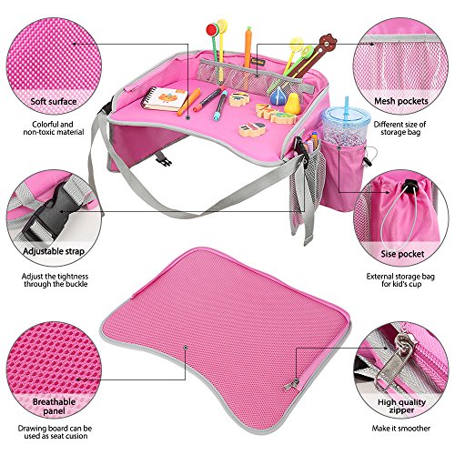 CONSTRUCTION RUGGED: L’assemblage de nylon et de qualité supérieure en fait un produit solide et durable. Conçu pour résister aux rigueurs des petits enfants, tandis qu’une sangle de verrouillage réglable sécurisée maintient le plateau solidement ancré sur le siège de l’auto. La surface de jeu est imperméable à l’eau et peut être facilement nettoyée.