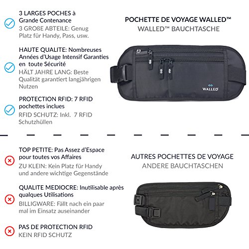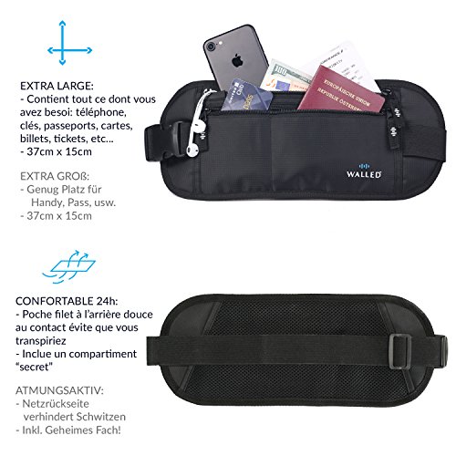 ✔ LA CEINTURE DU 21eme SIECLE: Enfin une poche élégante et pratique à cause transporter TOUS vos objets de valeur en toute sécurité lorsque vous voyagez. Votre pochette WalledTM est ample et a des compartiments séparés à cause dissimuler votre passeport, cartes de crédit, téléphone (même les plus gros models approximativement l’IPhone 7 Plus), clés, porte-monnaie et autres objets de valeurs – tous facilement accessibles.