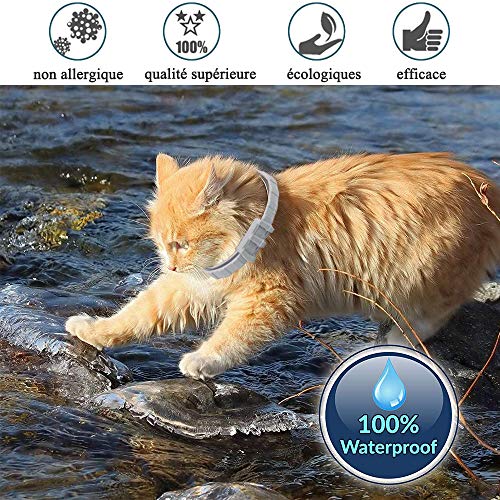 Design résistant à l’eau:la matière utilisée est résistante à l’eau, et ne causera aucune perte du principe actif même dans un environnement humide. Il peut également être laissé sur l’animal pendant le toilettage. Il n’est pas nécessaire de l’enlever dans un environnement humide ou aquatique.Votre animal de compagnie peut le porter en nageant dans la piscine ou en jouant sous la pluie.