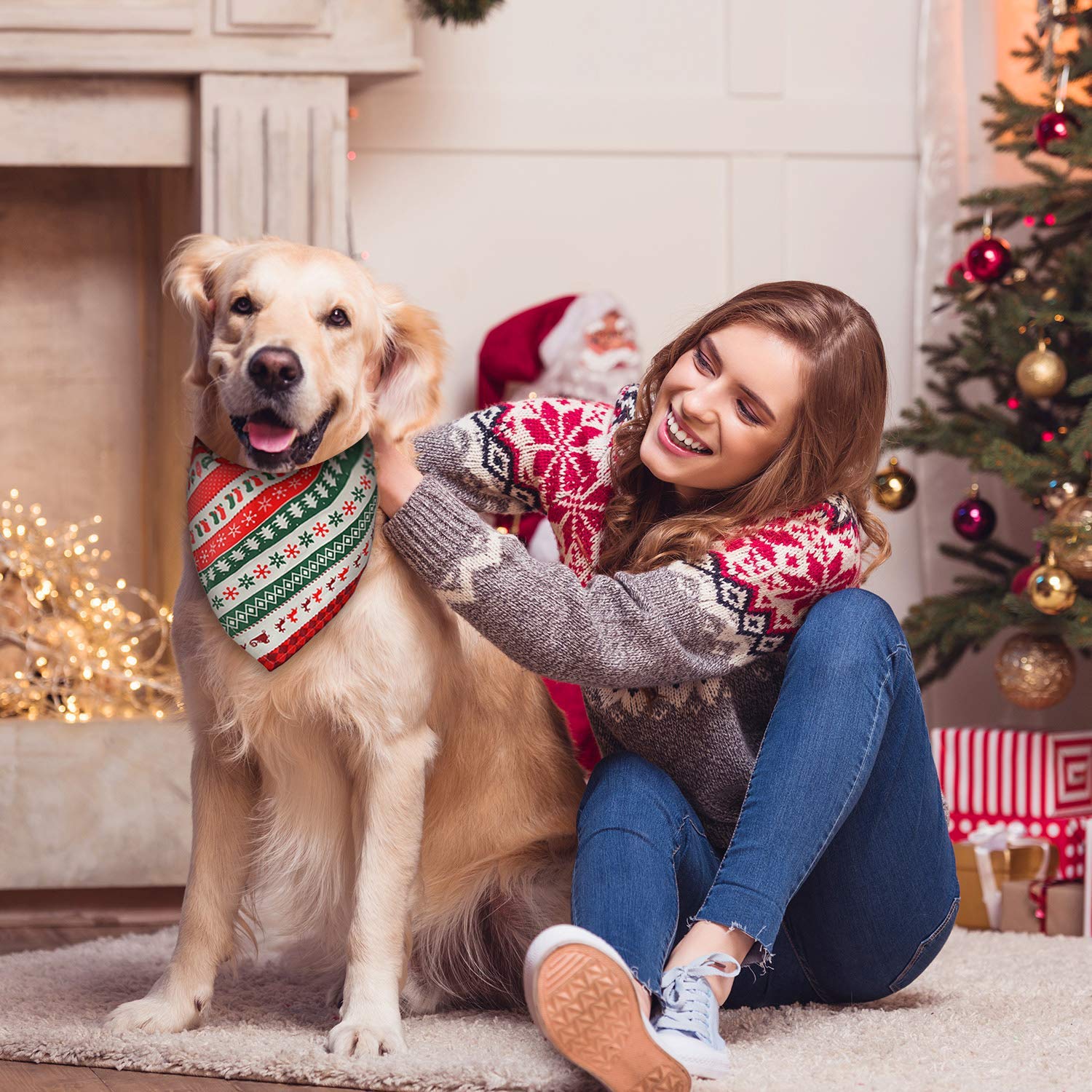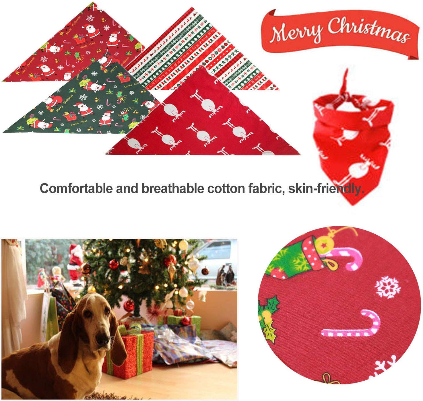 🎅🎁🎄[Matériau Premium]—Il est fait en tissu 100% coton, super absorbant, délicat, luxueuse et respirant. Ce bandana à cause chien est lavable et facile à nettoyer, il peut être lavé livre ou à la machine.