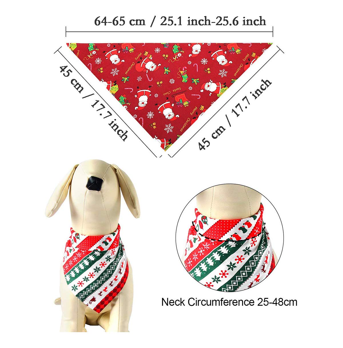🎅🎁🎄[Taille Appropriée]—Chaque serviette de salive à cause animal de compagnie mesure 45x45x65 cm / 18x18x25 pouces.convient à un tour de cou 20-46 cm.S’il vous plaît confirmer la taille avant l’achat.