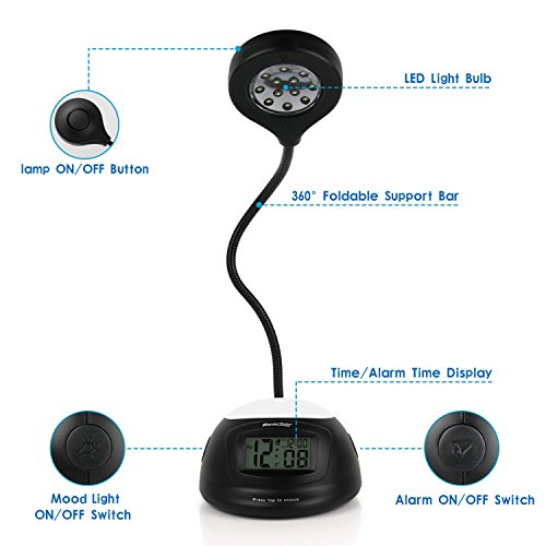 Multifunction 4-In-1 Design: Reveil +Lampe de bureau +Lumières veilleuses + Horloge, L’affichage actuel de l’heure et l’alarme. Non seulement servent de réveil spécialement dans les enfants, mais aussi utiliser dans lecture ou le lampe de chevet.