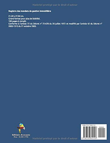 Registre des mandats de gestion immobilière: Conforme à l’article 72 du Décret n° 72-678 du 20 juillet 1972