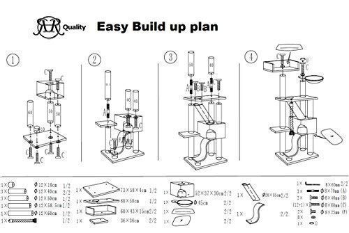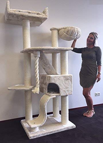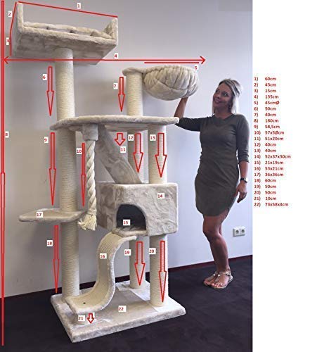 Chaque poteau, garanti de sisal 100 % aborigène, fait 12 cm de diamètre. Poids total : 48 kg Dans cet arbre à chat de qualité.Un tissu peluche épais de 600 g/m² est collé sur chaque plate-forme.C’est la méthode la plus robuste Dans une utilisation longue durée.