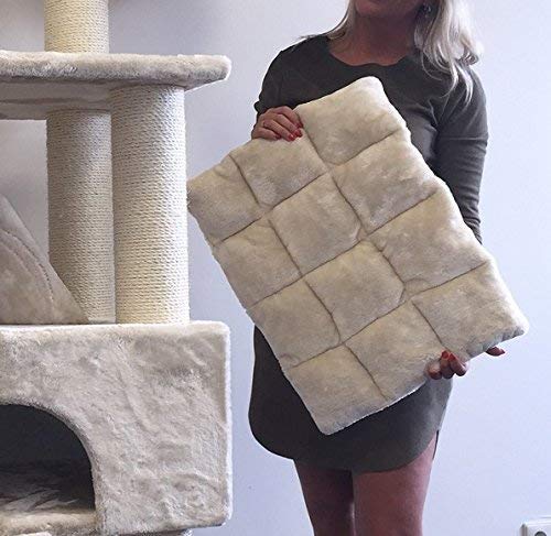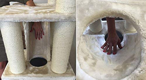 Arbre à chat communicatif chat kilimandjaro de luxe beige solide avec grandes places de couchage et abondamment Dans jouer et gratter.
