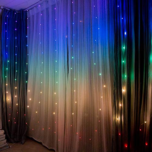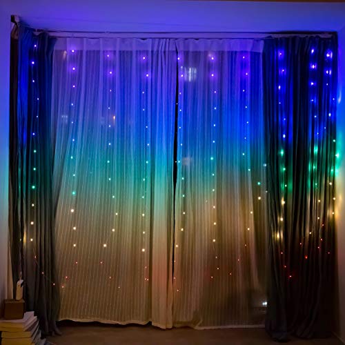 Rideau de lumière guirlande lumineuse exterieur interieur decorative led rideau lumineux bleu rose jaune couleur chambre…