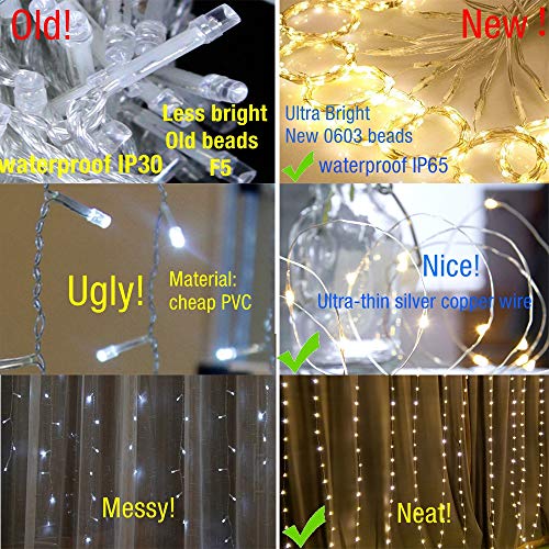 ★ Câble ultra long avec prise de 5 m ★ Le câble enfichable est très long, jusqu’à 16.5ft / 5m! Inutile de vous inquiéter, le câble enfichable est trop court! Facile d’accrocher ces lumières de rideau accrochantes menées de fenêtre n’importe où!