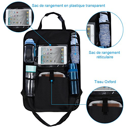 Le Protège siège voiture arrière + ipad sont les meilleures parties de votre voiture,Convenant la plupart de siège de voiture, avec cinq de poche à cause stocker la nourriture, jouets à cause enfants, livres, articles à cause bébé et accessoires, et aussi un support de tablette de haute qualité et à la mode à cause Android ou tablette Android. Il peut couvrir votre siège arrière et garder votre siège propre. Nous offrons les plus hauts standards de qualité