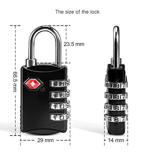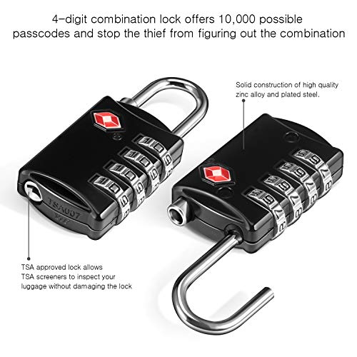 Haute qualité: TSA accepté et reconnu serrures, Le terrier de chaque serrure est fabriqué à abruptement d’un alliage de zinc haute résistance. La seule façon d’ouvrir le verrou est avec la clé spéciale TSA ou en connaissant la combinaison. Serrure à combinaison 4-cadran à cause une meilleure sécurité – chaque serrure peut être réglé à sa propre combinaison.