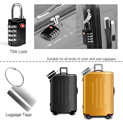 Rymall 2pcs Serrures à bagages TSA + 2pcs Bagages Étiquettes – Noir & Blanc argenté