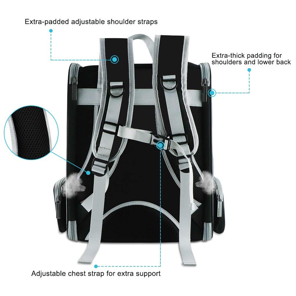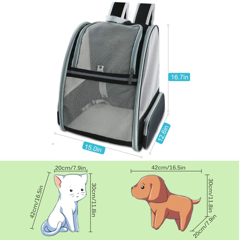 Le sac à dos avec 3 côtés en mesh assure une bonne ventilation et rend votre animal plus riche en été, Ils offrent également une vue avenant afin que votre animal de compagnie puisse voir à l’accueil et vous pouvez regarder votre animal de compagnie.