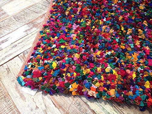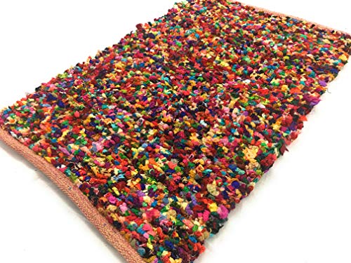 Réversible en coton coloré tapis épais. Les dimensions de ce tapis sont 60 cm x 90 cm. Une coquette stylerug haillons qui est diplôme artisanal de matériaux recyclés et coloré.