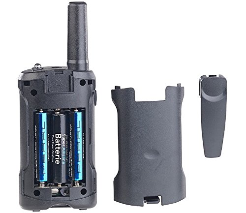 2 talkies-walkies avec clips de fixation ceinture et mode d’emploi en français