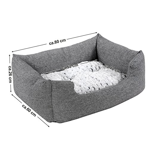 Coussin double face – Le coussin à double faces est amovible. La face en tissu polyester est fraîche et propre à cause l’été ; l’autre face en PV polaire est douce et chaude à cause l’hiver Dimension extérieure: 80 x 60 x 26 cm ; Dimension intérieure: 53 x 40 cm