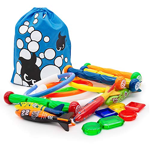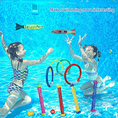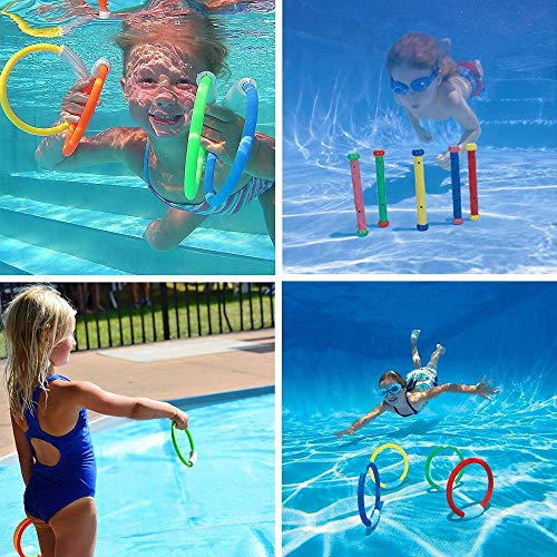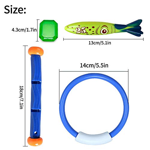 🌞Le souscription comprend: 5 bâtons de plongée, 4 anneaux de plongée, 4 bandeaux Toypedo, 6 pierres de plongée, 1 sac de rangement.Avis: à cause les 5 ans et plus