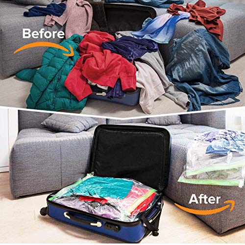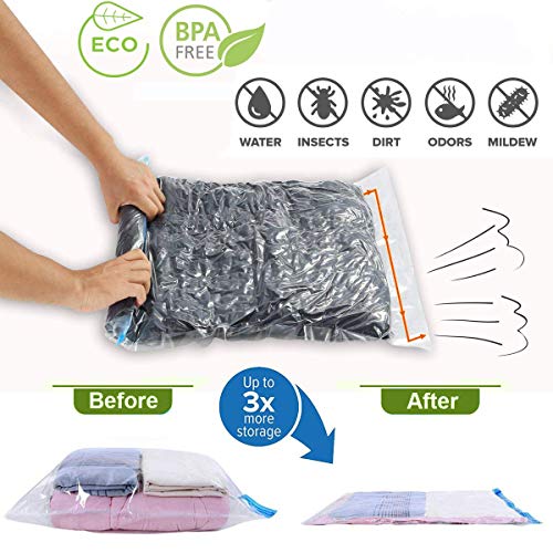 【Économisez 80% plus d’abîme】 8 paquets – 2 x moyen (40 * 50 cm / 16 * 20 po); 3 x étendu (40 * 60 cm / 16 * 24 po); 3 x Jumbo (50 * 70 cm / 20 * 28 po). Rangez vos vêtements, vos draps, vos serviettes, vos couvertures et plus encore à cause vos bagages et vos petits bagages à main.