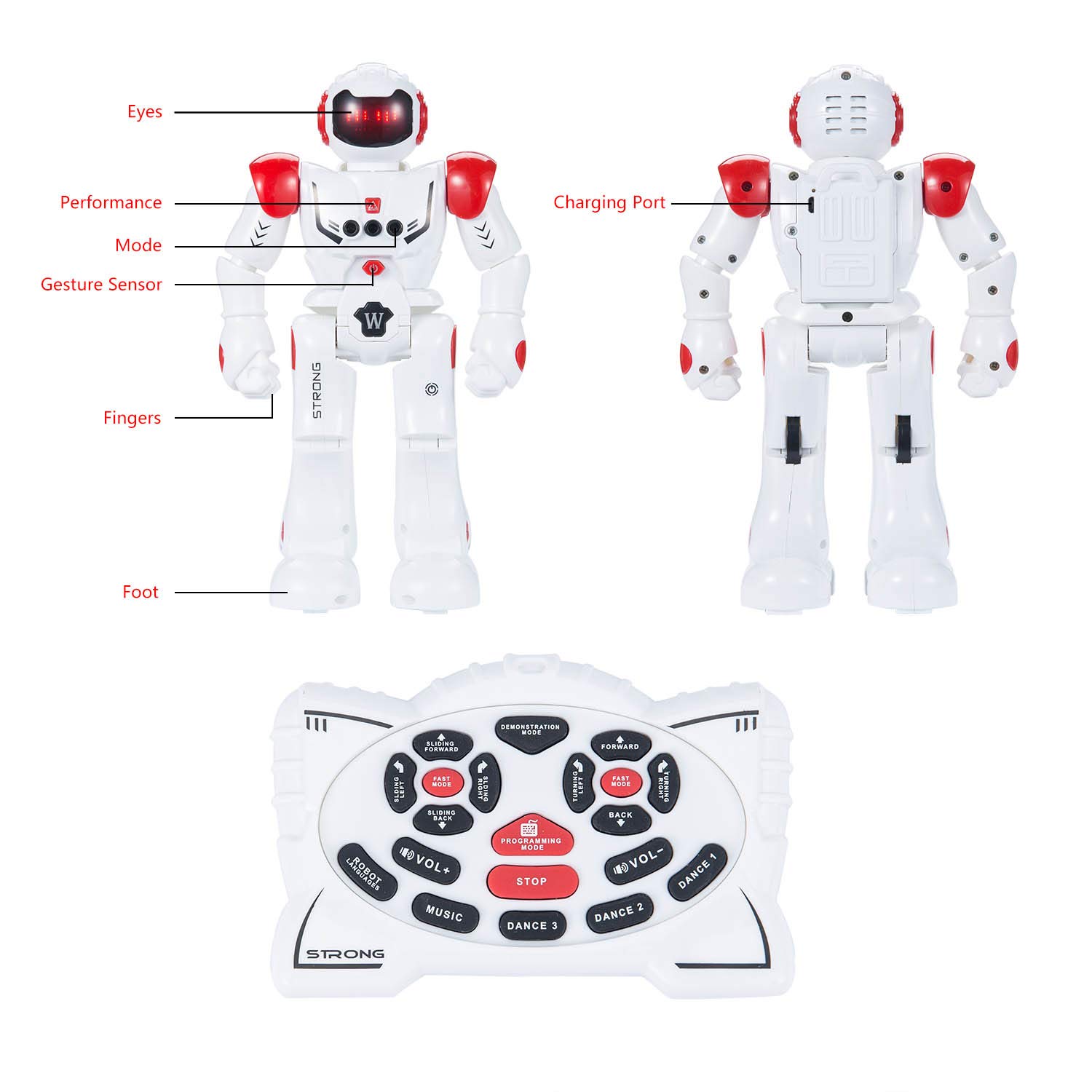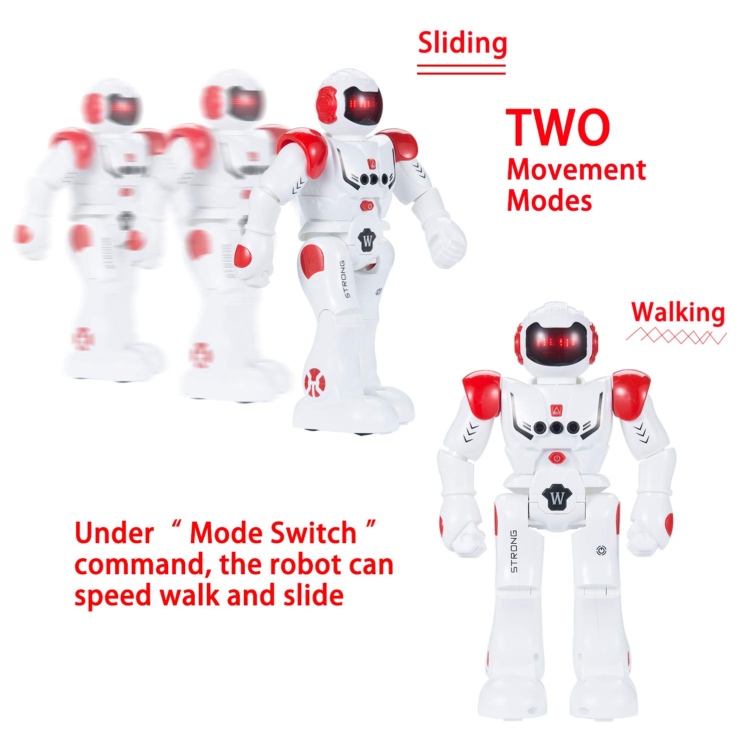 🍭Actions programmables – Appuyez sur le tumeur Programme puis entrez une série d’actions. Le robot intelligent peut être programmé pour ainsi dire vous l’avez créé. La combinaison des yeux du son rend le temps de jeu plus interactif.